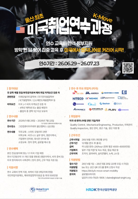 [글로벌브라이트] 산업인력공단 K-Move 스마트 모빌리티 미국 연수과정