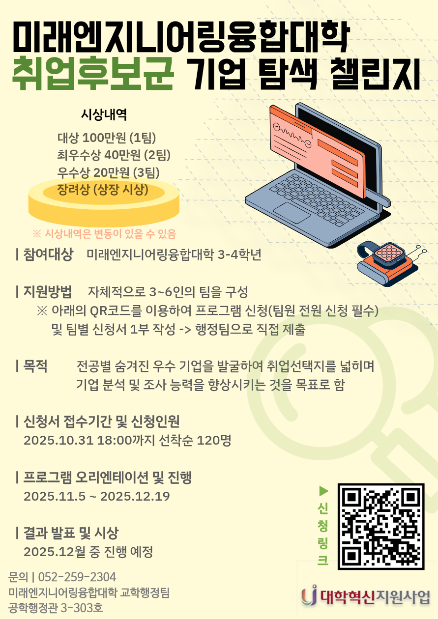 미래엔지니어링융합대학 취업후보군 기업탐색 챌린지 안내