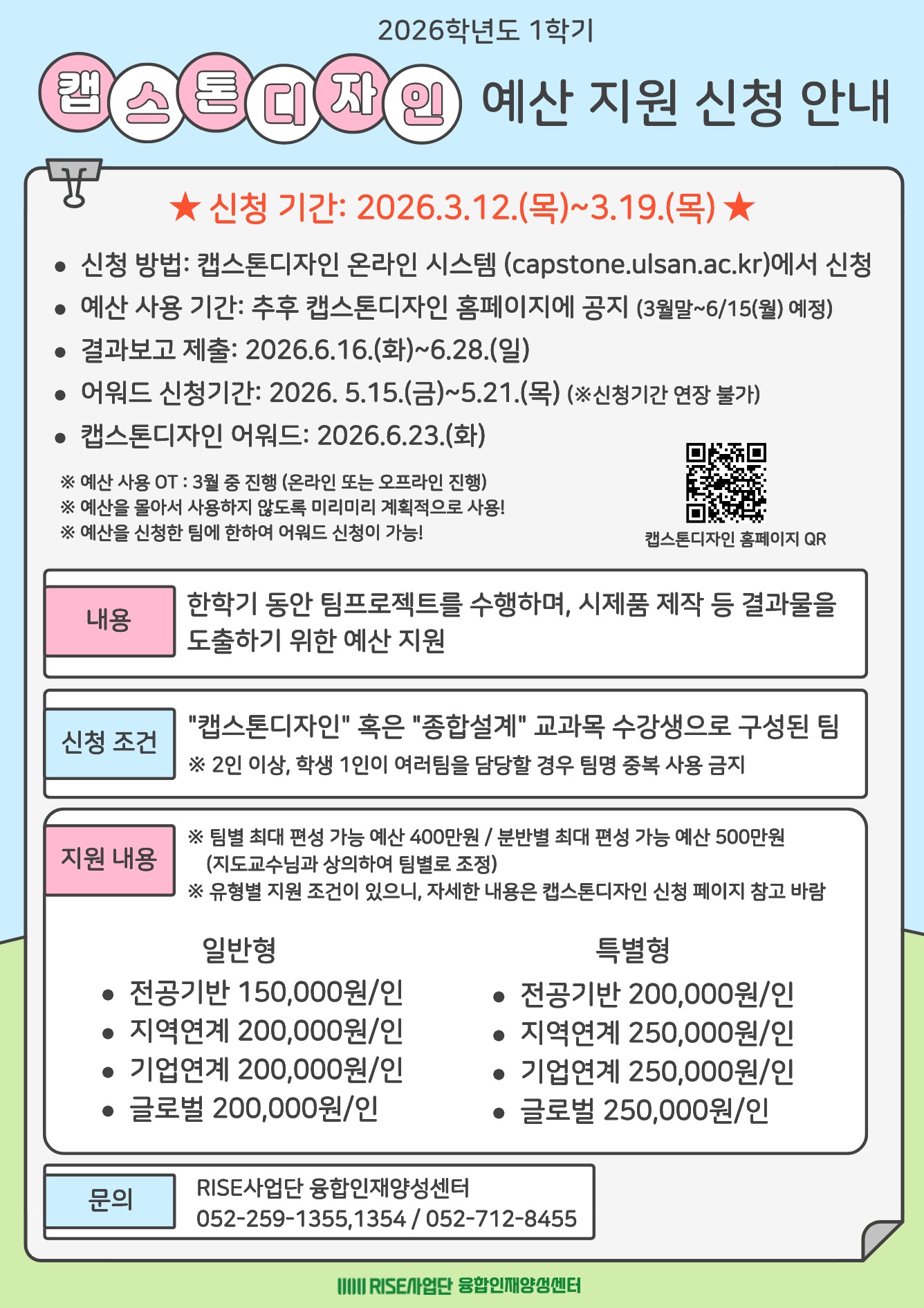 2026-1학기 캡스톤디자인 예산지원 신청 안내